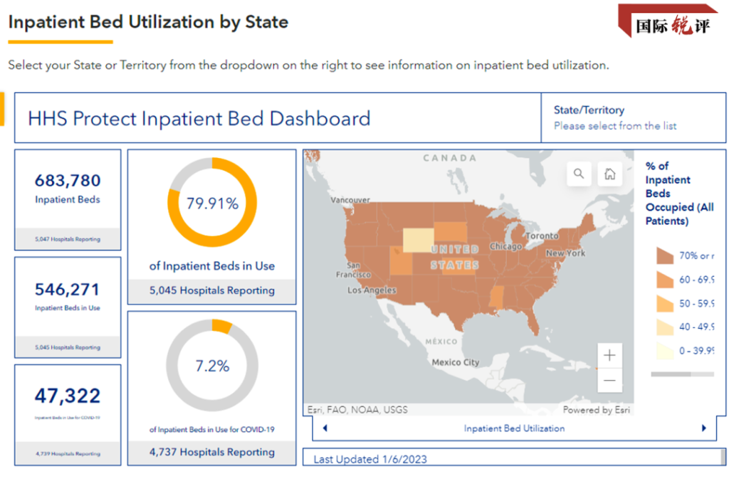 Atualmente, as epidemias como o vírus sincicial respiratório (VSR), Covid-19 e a gripe são epidêmicas nos Estados Unidos. Dados do Departamento de Saúde e Serviços Humanos dos EUA mostram que, na primeira semana de 2023, a taxa de ocupação dos leitos de UTI chegou a 78,99% nos hospitais em todo o país, e a taxa de ocupação de leitos hospitalares atingiu 79,91%.