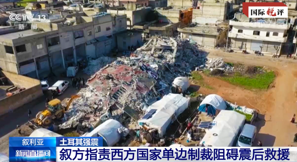 Para o povo sírio, que enfrenta uma crise humanitária, os recentes terremotos na Turquia pioraram ainda mais a situação. O Ministério das Relações Exteriores da Síria disse que o país não possui equipamento de resgate devido às sanções de longa data do Ocidente, incluindo os Estados Unidos. As equipes de resgate precisam trabalhar o dobro do tempo e as pessoas só podem cavar nas ruínas com as próprias mãos. Khaled Hboubati, chefe do Crescente Vermelho Árabe Sírio, disse numa coletiva de imprensa: “Por causa do bloqueio e das sanções, não há nem mesmo combustível para os veículos (de socorro e resgate).”