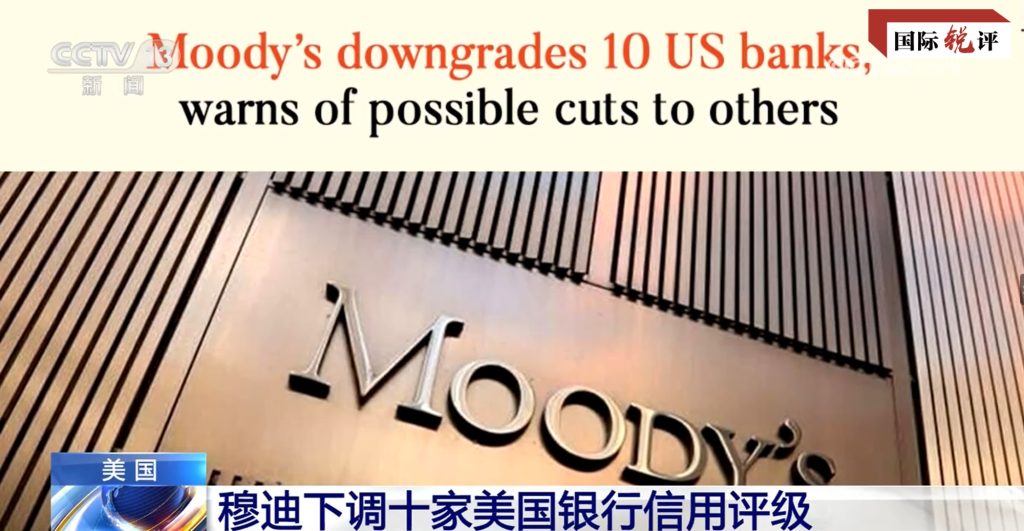 A Moody, uma das três agências de classificação de renome internacional, baixou a classificações de crédito de dez bancos estadunidenses de pequeno e médio porte no dia 7. Ao mesmo tempo, seis grandes bancos do país, incluindo o U.S Bankcorp e o Bank of New York Mellon, foram inseridos na lista de observação de rebaixamento de classificação. Não obstante, a Moody ainda adotou uma perspectiva negativa para 11 bancos estadunidenses.