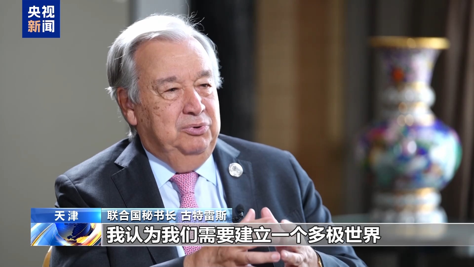 Na entrevista, a reportagem do CMG citou que a OCS se baseia no Espírito de Shanghai, cujo cerne é o respeito pelas diferentes culturas e civilizações, a defesa da igualdade e a rejeição da mentalidade da Guerra Fria. O secretário-geral foi questionado sobre sua visão sobre o papel da OCS no mundo atual e em relação aos valores e as iniciativas da ONU.