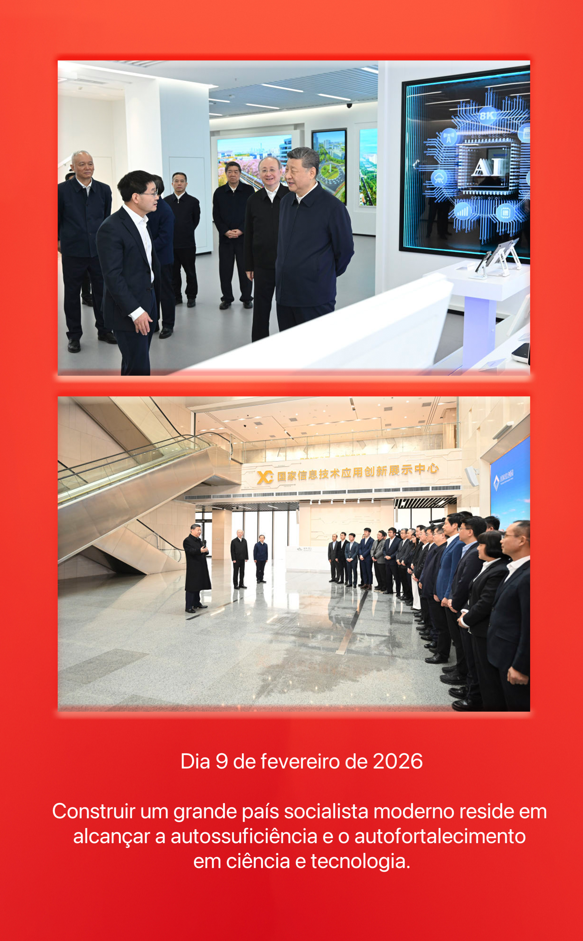 O presidente chinês, Xi Jinping, inspecionou nesta segunda-feira (9) o trabalho de inovação científica e tecnológica em Beijing, e conversou cordialmente com representantes de pesquisadores e responsáveis de empresas científico-tecnológicas. Ele afirmou que a chave para construir um grande país socialista moderno reside em alcançar a autossuficiência e o autofortalecimento em ciência e tecnologia.