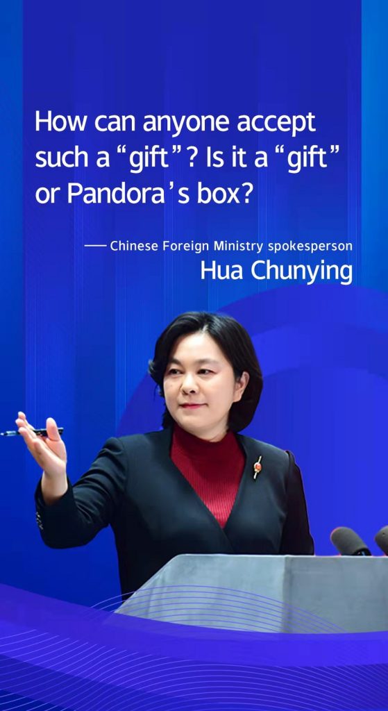 “A Embaixada dos EUA no Nepal descreveu a doação de US$ 500 milhões de MCC como ‘um presente do povo americano aos nepaleses’. Eu me pergunto, desde quando um presente vem com o pacote de um ultimato? Como alguém pode aceitar tal ‘presente’? É um ‘presente’ ou uma caixa de Pandora?”, disse a porta-voz Hua Chunying.