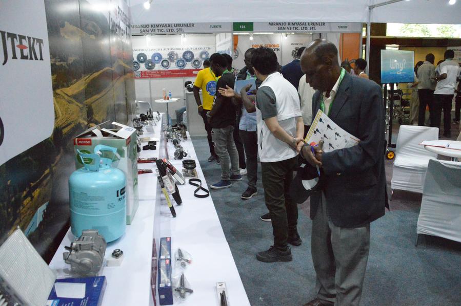 Visitantes observam produtos na Feira Internacional de Comércio da Exposição Automotiva, em Nairóbi, capital do Quênia, no dia 28 de maio de 2025. (Foto por Charles Onyango/Xinhua)