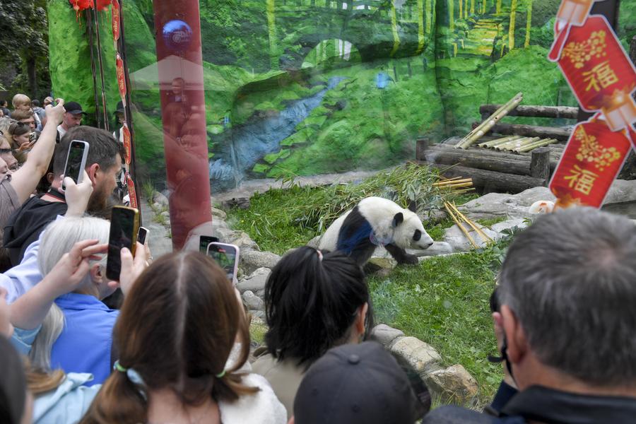 Fora do recinto da panda, a sra. Dmitriyeva segurou sua filha pequena e observou o animal por muito tempo. “É tão bom ver um animal tão precioso e único como este na Rússia”, disse ela à Xinhua.