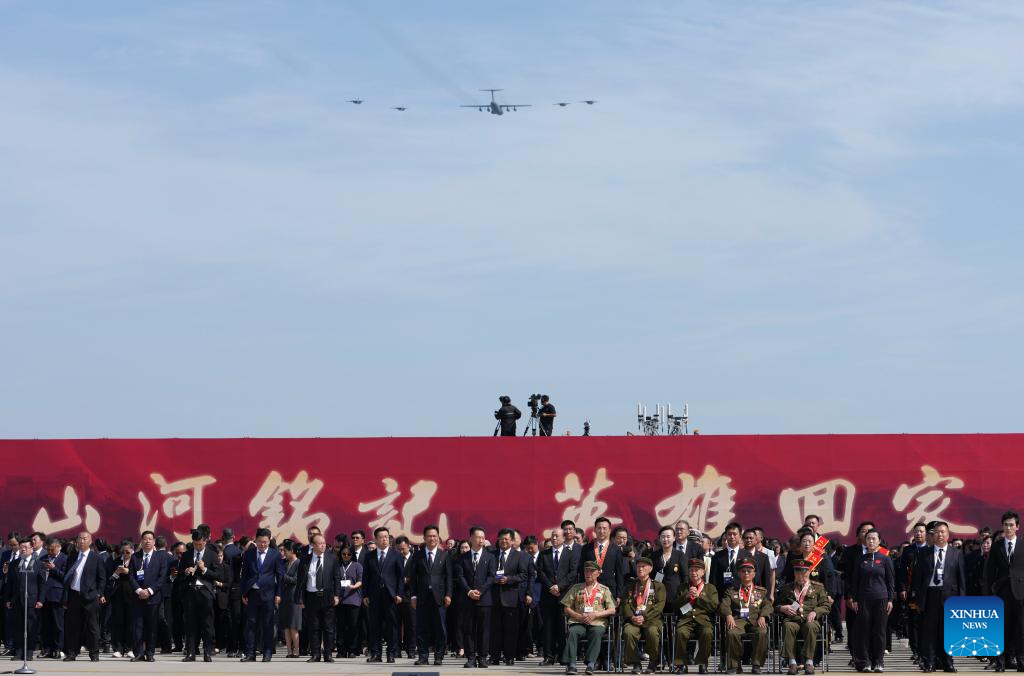 Um avião de transporte Y-20 da Força Aérea do Exército de Libertação Popular da China, transportando os restos mortais dos mártires e 267 itens de objetos relacionados, pousou no Aeroporto Internacional Taoxian, em Shenyang, capital da Província de Liaoning, no nordeste da China.