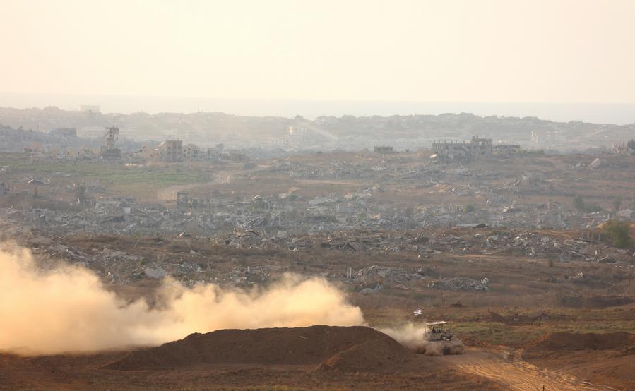 Tanque israelense opera na Faixa de Gaza em 25 de setembro de 2025. (Foto por Gil Cohen Magen/Xinhua)