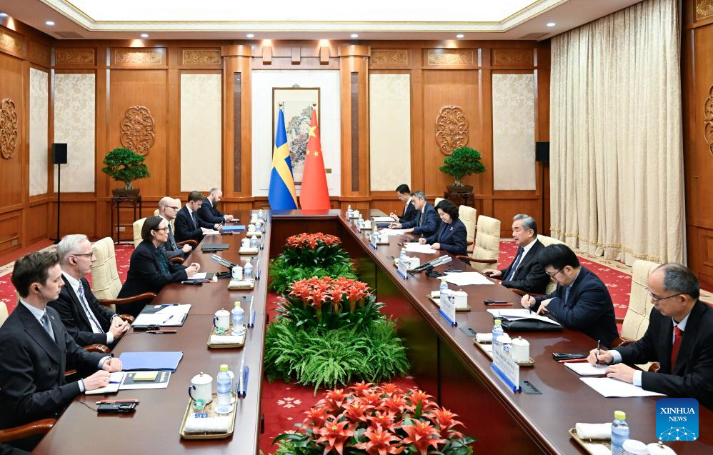 Observando que este ano marca o 75º aniversário do estabelecimento das relações diplomáticas entre a China e a Suécia, Wang pediu às duas partes que implementem o consenso alcançado entre os dois chefes de Estado e façam bom uso do diálogo institucional nas áreas de economia e comércio. Ele instou as duas partes a aprofundarem sua comunicação e coordenação em assuntos multilaterais e a expandirem a cooperação prática em áreas como comércio e investimento, inovação científica e tecnológica, economia digital, desenvolvimento verde, vida e saúde. Ele também disse que a China e a Suécia devem trabalhar juntas para trazer as relações bilaterais de volta aos trilhos certos e promover continuamente o desenvolvimento saudável e estável das relações.