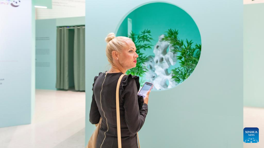 Mulher visita exposição com o tema “Uma Aspiração Compartilhada Além das Montanhas e Mares” em Belgrado, Sérvia, em 17 de outubro de 2025. Uma exposição foi inaugurada em Belgrado, capital da Sérvia, na sexta-feira para comemorar 70 anos de amizade entre China e Sérvia, sob o tema “Uma Aspiração Compartilhada Além das Montanhas e Mares”.