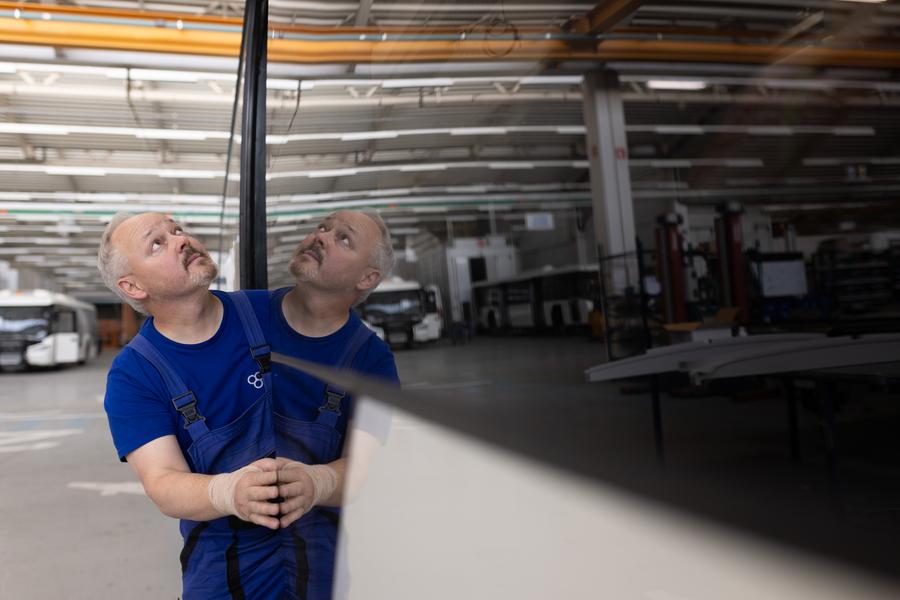 Funcionário da TAM trabalha na linha de produção de ônibus elétricos para o Aeroporto Charles de Gaulle de Paris em Maribor, Eslovênia, em 14 de junho de 2024. A TAM, uma das principais fabricantes de ônibus e veículos comerciais da Eslovênia, está passando por uma significativa revitalização após sua aquisição pela China. (Foto por Zeljko Stevanic/Xinhua)